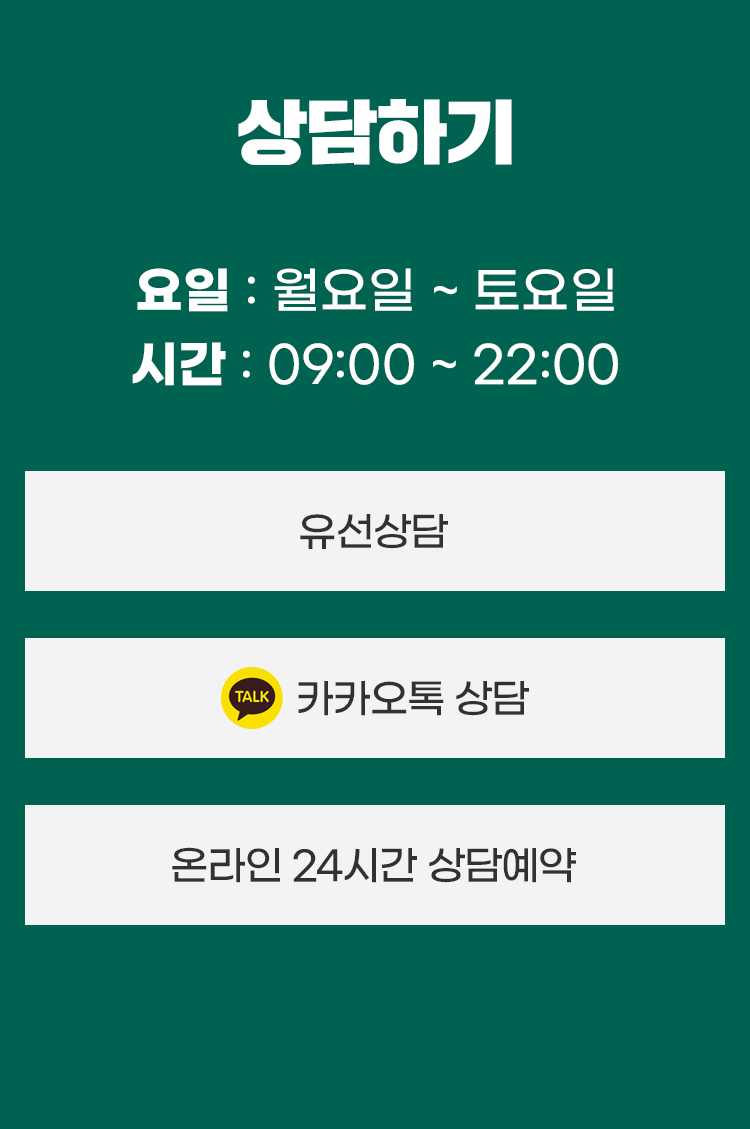 '카카오톡' 또는 '온라인 상담예약'을 남겨주시면,